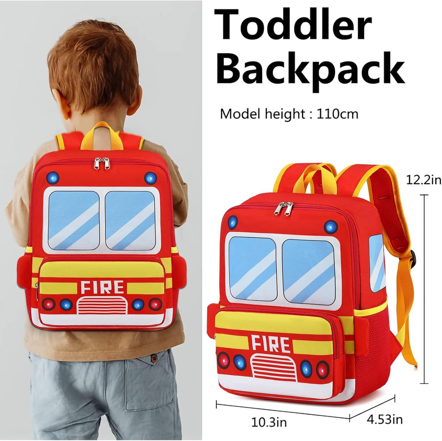 Toddler Backpack Boy Preschool School Bus Bookbag Kindergarten 3D Daycare Bags with Insulation Lunch Box