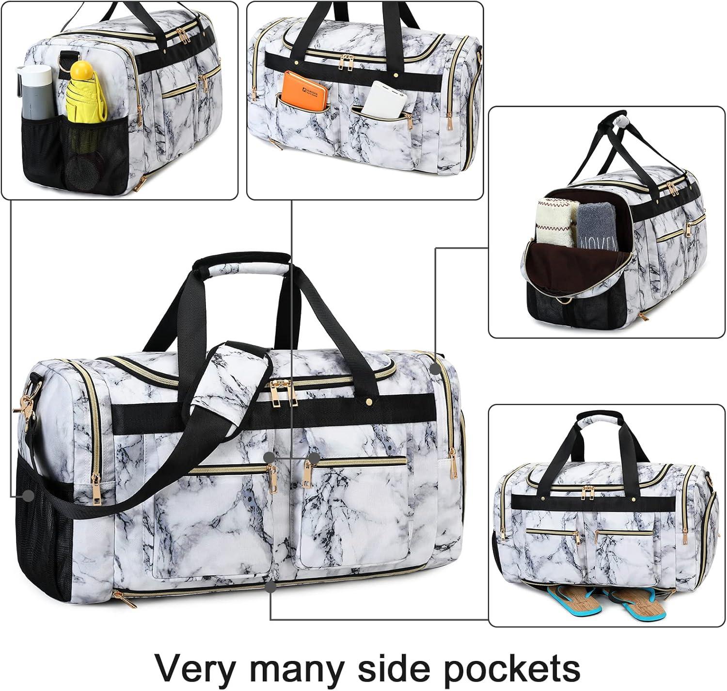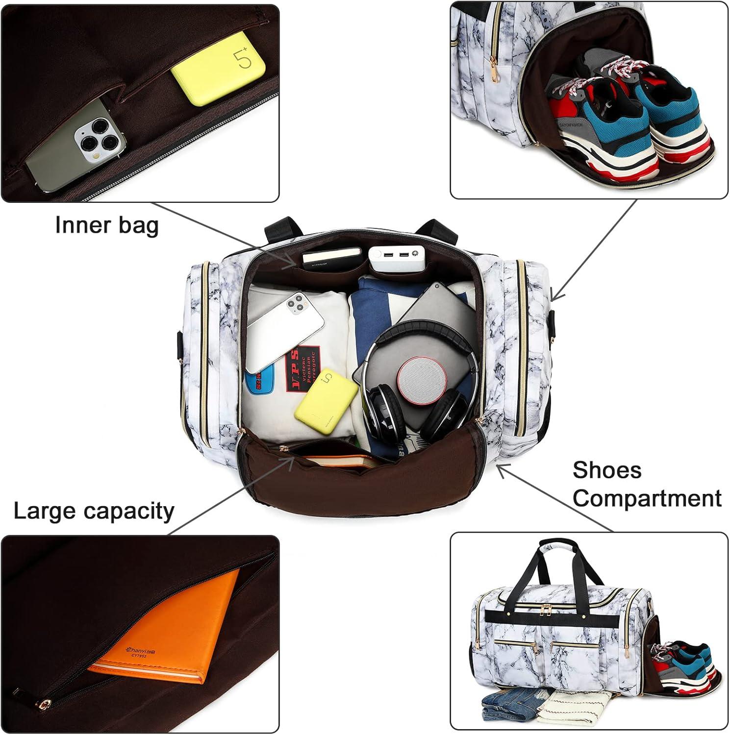 Get up to 70% off on Weekender Overnight Duffel Bag Shoe Pocket for Women Men Weekend Travel Tote Carry On Bag (Marble 1) styles during our end-of-season clearance event.