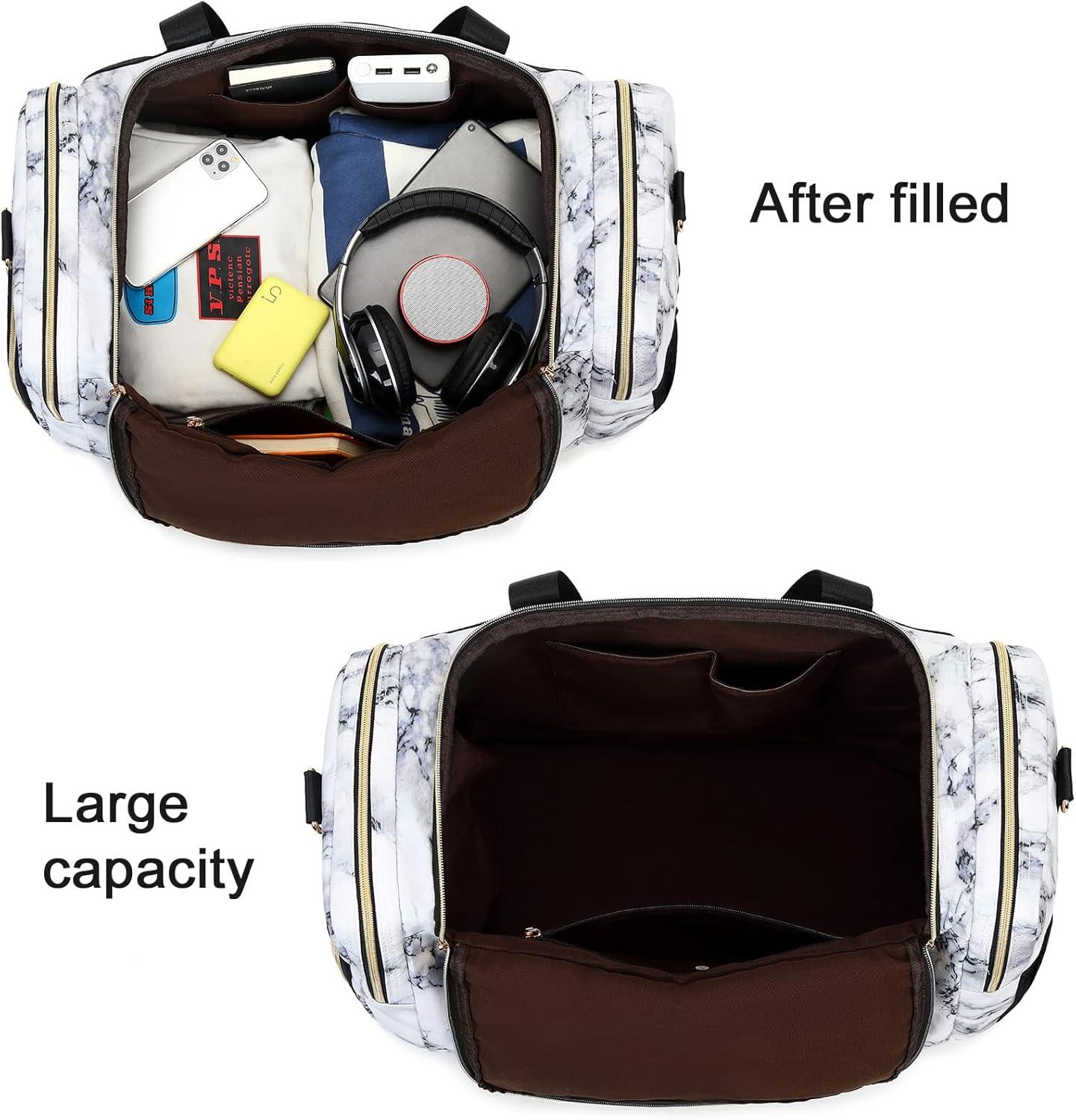 Weekender Overnight Duffel Bag Shoe Pocket for Women Men Weekend Travel Tote Carry On Bag (Marble 1)